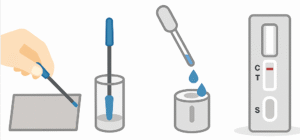 - Estrazione: inserire il tampone nella provetta con il tampone/soluzione di estrazione, spremere/agitarlo, quindi fissare il beccuccio.